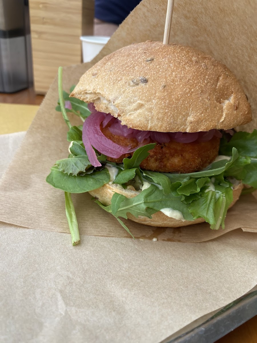 Really nice place and food Service simply incredible and friendly Salmon burger was very good . We will be coming back to try more delicious sea food